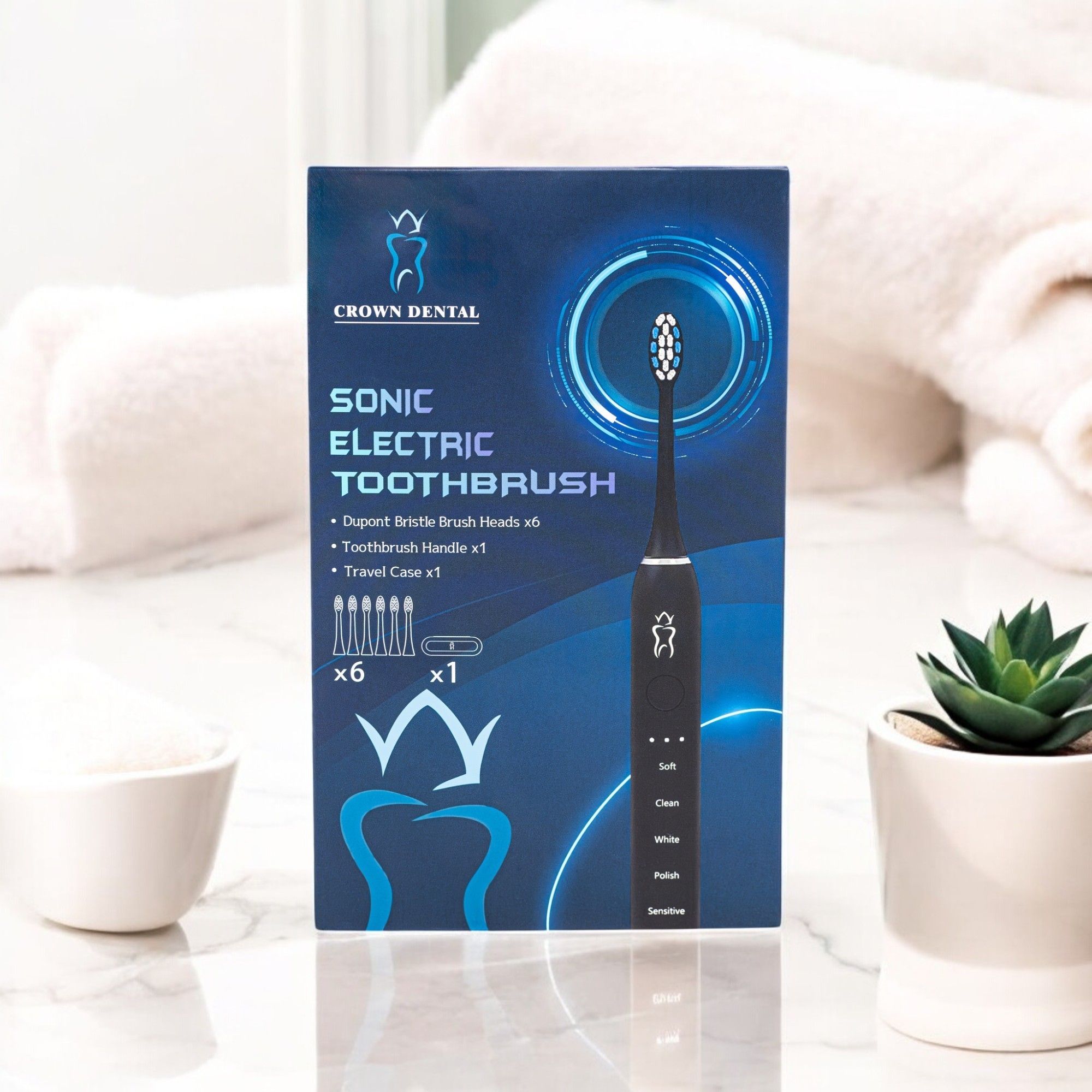 Ha a legmagasabb szintű tisztítás a cél, érdemes a modern technológiára váltani. A Crown Dental saját ultrahangos fogkeféje pontosan ezt a prémium élményt hozza el az Ön fürdőszobájába. Akár 6 cserélhető fejjel gondoskodik róla, hogy az egész család megtapasztalhassa a professzionális fogtisztítás érzését.